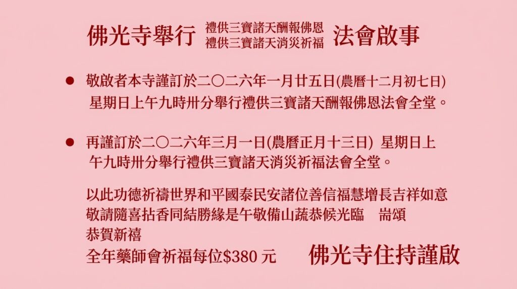 晚課及共修: 逢星期六下午4時至下午8時,歡迎參與。